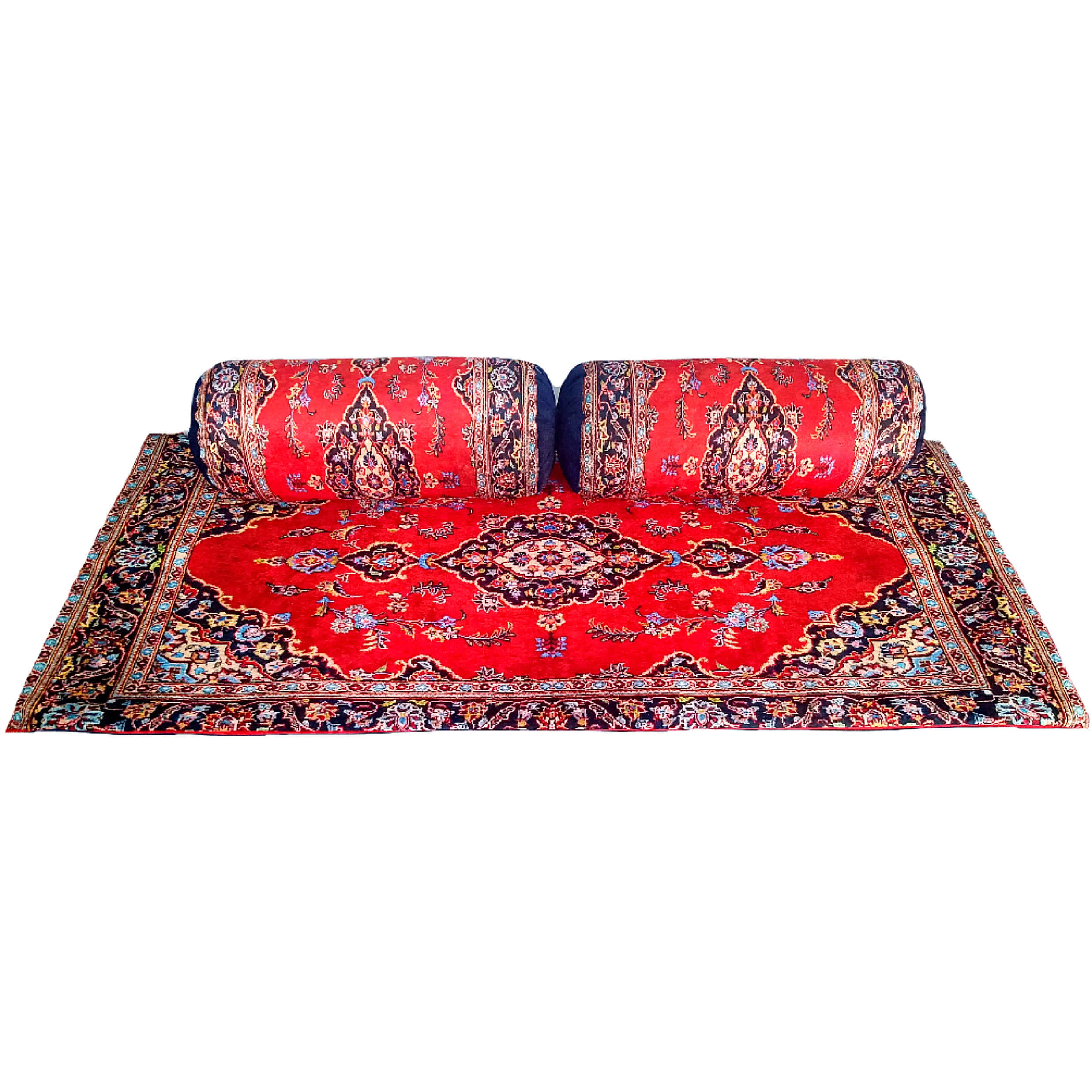 Add authentic Persian charm to your home with our 3-Piece Traditional Velvet Backrest and Mattress Set – Persian-Inspired Home Décor. This set includes two plush backrest pillows and a comfortable mattress, all crafted with premium heavy velvet and high-quality materials. The top layer of the mattress and pillows features 4 mm thick polyester-cotton velvet, while the bottom layer is made of heavy Chanel-style velvet. The middle layer consists of 3 cm industrial felt covered with heavy spun polyester fabric, ensuring durability and comfort. Each backrest pillow measures 28×28×70 cm and weighs 11–12 kg, while the mattress measures 87×190 cm, with a total thickness of 5 cm and weight of 5–6 kg. All pieces have zippers for easy removal and cleaning of the covers. Perfect for guest bedding, floor seating, traditional rooms, patios, or travel.