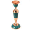 This exquisite Persian copper candlestick, handcrafted with intricate turquoise inlay, showcases the pinnacle of traditional Iranian artistry. Each piece is meticulously created by skilled artisans, featuring a detailed mosaic of vibrant turquoise stones set against the warm, lustrous copper. The striking contrast between the cool blue turquoise and the rich copper results in a visually captivating work of art. More than just a source of light, this candlestick serves as a unique decorative masterpiece, embodying the timeless beauty and cultural heritage of Persian design. Ideal for enhancing any décor with a touch of sophistication and luxury, it stands as both a functional item and an elegant statement piece. Illuminate your home with this handcrafted candlestick and celebrate the elegance of traditional craftsmanship.