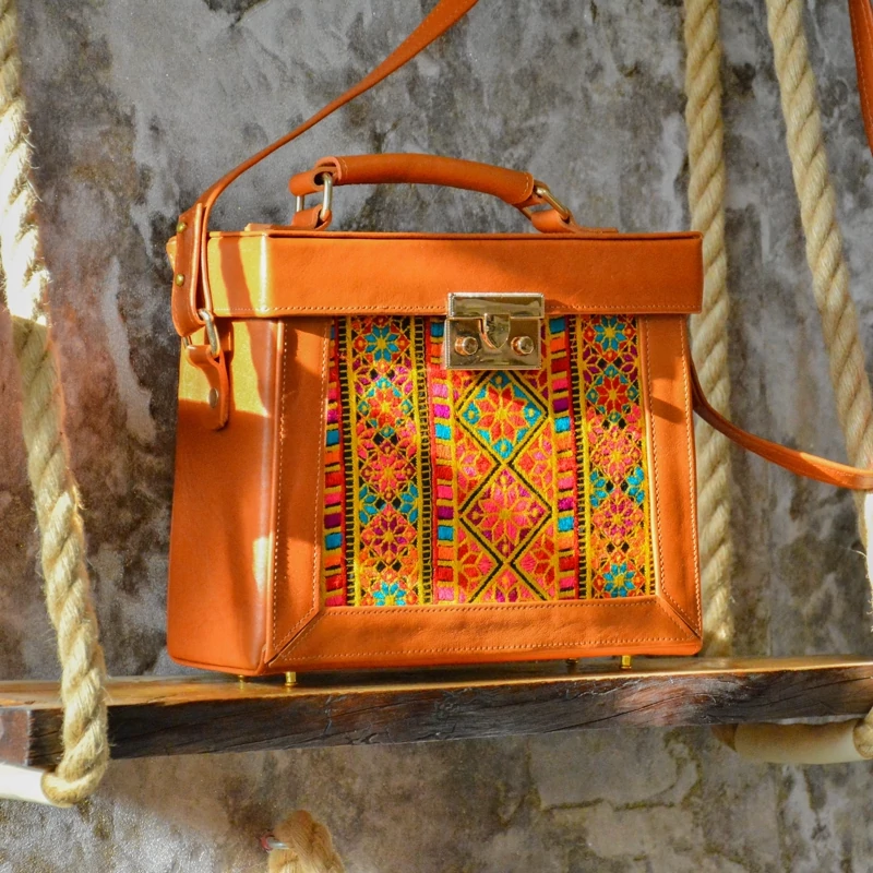 Celebrate traditional Persian artistry with this exquisite shoulder bag featuring Balochi embroidery on a soft velvet front panel. The bag's body is crafted from high-quality natural cow leather, providing durability and a refined appearance, while the intricate Balochi motifs add a unique cultural and artistic touch, perfect for elevating your style during special occasions. Designed to be lightweight yet sturdy, this bag offers ample space for essentials while maintaining its elegant shape. Its combination of luxurious leather and detailed embroidery ensures both style and practicality, making it an ideal accessory for formal events, celebrations, or cultural gatherings.- Material: Natural cow leather with velvet front panel featuring Balochi embroidery