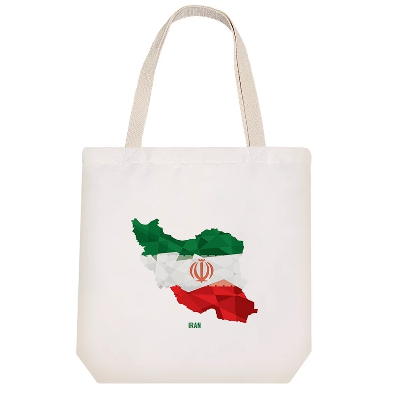 This canvas tote bag features a bold Iran map print, combining artistic style with everyday functionality. Crafted from durable Hazaan fabric, it offers both strength and lightweight comfort for daily use. The sturdy cotton webbing handles are securely attached, allowing for comfortable hand or shoulder carry. With dimensions of 45×50×11 cm, this tote provides ample space for your essentials and includes an inner pocket to keep smaller items organized. The gusseted base maintains its shape while adding extra capacity. The high-quality digital print ensures long-lasting, vibrant colors. Fully washable by hand or machine without fading, this tote is perfect for everyday errands, shopping, or travel. Suitable for both men and women, it’s a stylish and practical accessory for any occasion.