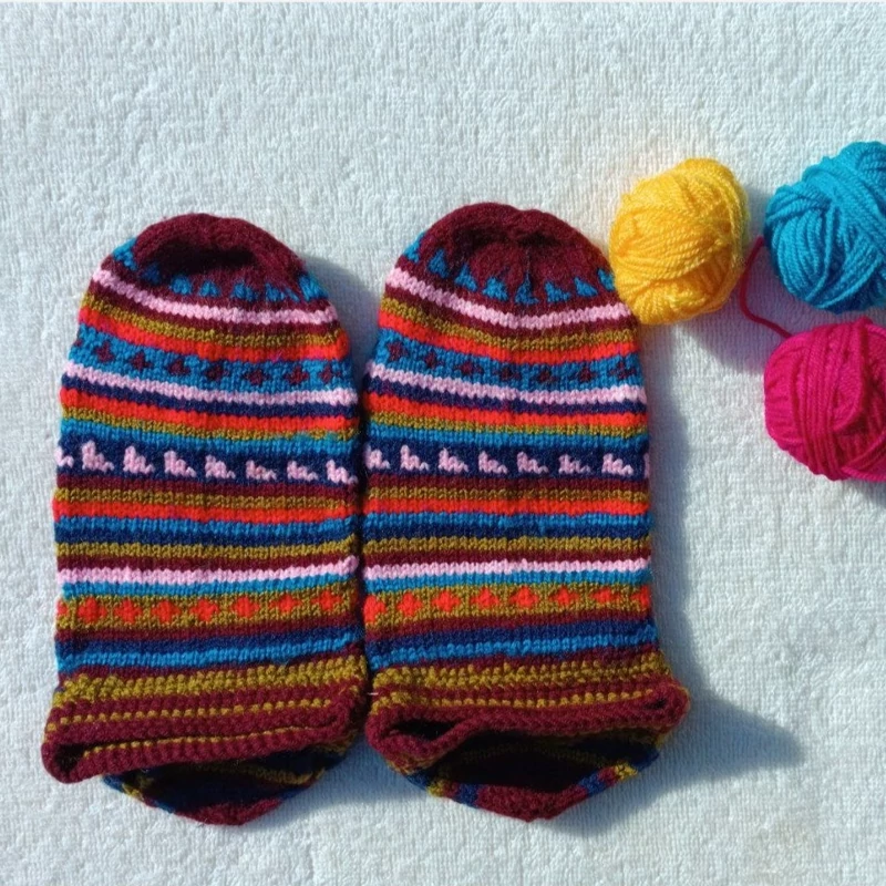 These hand-knitted colorful wool socks for women are carefully crafted with premium yarn, offering a soft, warm, and comfortable fit. Each pair is handmade, featuring unique traditional patterns in navy, pink, burgundy, and blue, reflecting authentic home craftsmanship. Ideal for women of all ages, these socks are perfect for daily wear, indoor lounging, casual outings, or winter gatherings. Lightweight yet cozy, they provide warmth without bulk and fit size 37/38. Easy to maintain, they can be gently hand washed in cold water to preserve their texture and vibrant colors. Perfect for adding a splash of color and charm to any outfit or as a thoughtful gift for those who appreciate artisan hand-knitting.