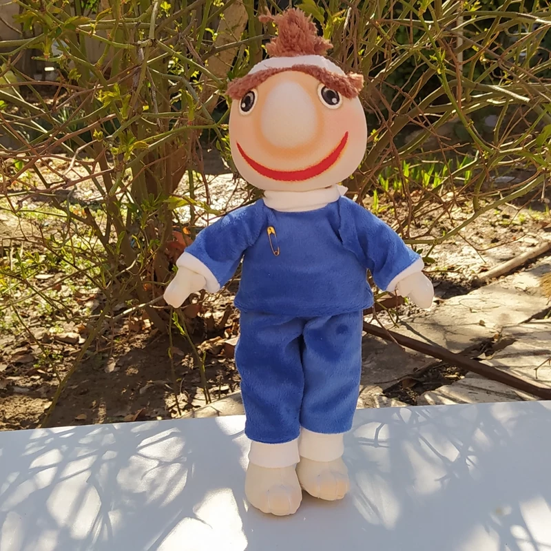 This handmade standing cloth doll features Bache Famil-e Door, one of the most beloved characters from the iconic Iranian children’s show Kolah Ghermezi. Measuring 30cm tall, the doll is crafted with soft fabric, expressive eyes, a wide red smile, and signature brown yarn hair. Dressed in a blue outfit with white cuffs and a safety pin detail, it captures the cheerful and curious spirit of the original character. Perfect for fans of Iranian puppetry, nostalgic collectors, educators, and children, this doll brings cultural memories to life. Whether used for display, storytelling, or gifting, it celebrates the charm of traditional children’s shows and the emotional connection generations share with Kolah Ghermezi. A heartfelt tribute to Iranian creativity and childhood joy.
