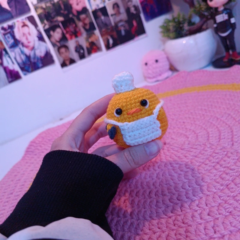 This handmade crochet chef chick keychain is crafted from soft yarn using careful crochet techniques, resulting in a lightweight and durable accessory. Designed as a small chick wearing a chef hat, it offers a playful yet simple appearance suitable for everyday use. The keychain can be used as a bag charm, key accessory, or hanging ornament for closets and small spaces. Available in various colors, each piece is handmade, so slight differences in shape and tone may occur, giving every item a unique character. Its compact size and soft texture make it easy to carry, display, or gift. Perfect for adding a subtle, handcrafted touch to personal items or for thoughtful gifting.