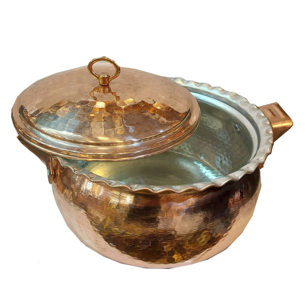 This stylish Hammered Copper Stock Pot is more than just a cooking utensil—it's a statement piece that adds a touch of modern elegance to any home. With its eye-catching hammered texture and sleek design, it effortlessly enhances the aesthetics of your kitchen. Cooking in copper utensils has long been cherished for its exceptional heat conductivity and precise temperature control. Experience the joy of preparing delicious meals with ease, knowing that this Copper Stock Pot will deliver exceptional culinary results. Not only does this stock pot offer a stunning appearance, but it also boasts easy-clean properties, ensuring hassle-free maintenance. The durable build ensures longevity, making it a worthy addition to your kitchen for generations to come. Upgrade your cooking experience with this exquisite Hammered Copper Stock Pot. Combining delicate aesthetics with robust functionality, it is poised to become a beloved family heirloom that will be cherished for years to come.