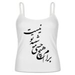 This beautiful & Comfortable Persian Style White Spaghetti Straps Tank Top decorated with Iranian Calligraphy design. This Top is suitable for Women & Girls. This attractive Spaghetti Straps Tank Top is made of Polyester & Cotton and is a great option for daily activities & Casual.
