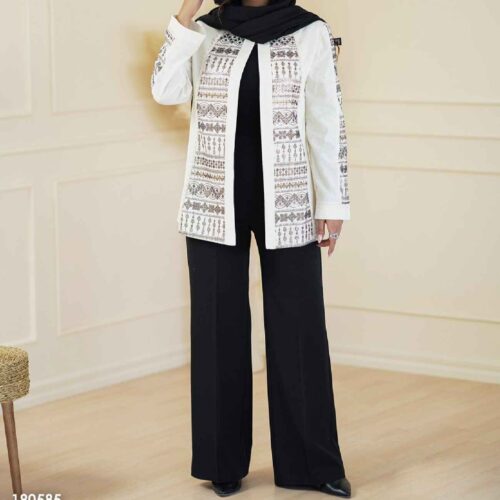 The Persian Linen Manto with a geometric design is a sophisticated blend of traditional craftsmanship and modern aesthetics. Made from high-quality linen, this Manto offers both comfort and durability, making it ideal for various seasons. The geometric patterns, inspired by ancient Persian motifs, are intricately woven into the fabric, adding a touch of cultural richness and artistic elegance. The Manto's tailored fit and clean lines create a flattering silhouette, while its neutral tones make it versatile enough for both casual and formal occasions. Whether worn over a dress or paired with trousers, this Manto exudes timeless style and refined elegance.