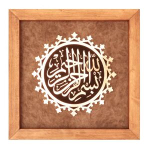 Framed Islamic Calligraphy Marquetry Copper Metalwork Art Besmellah